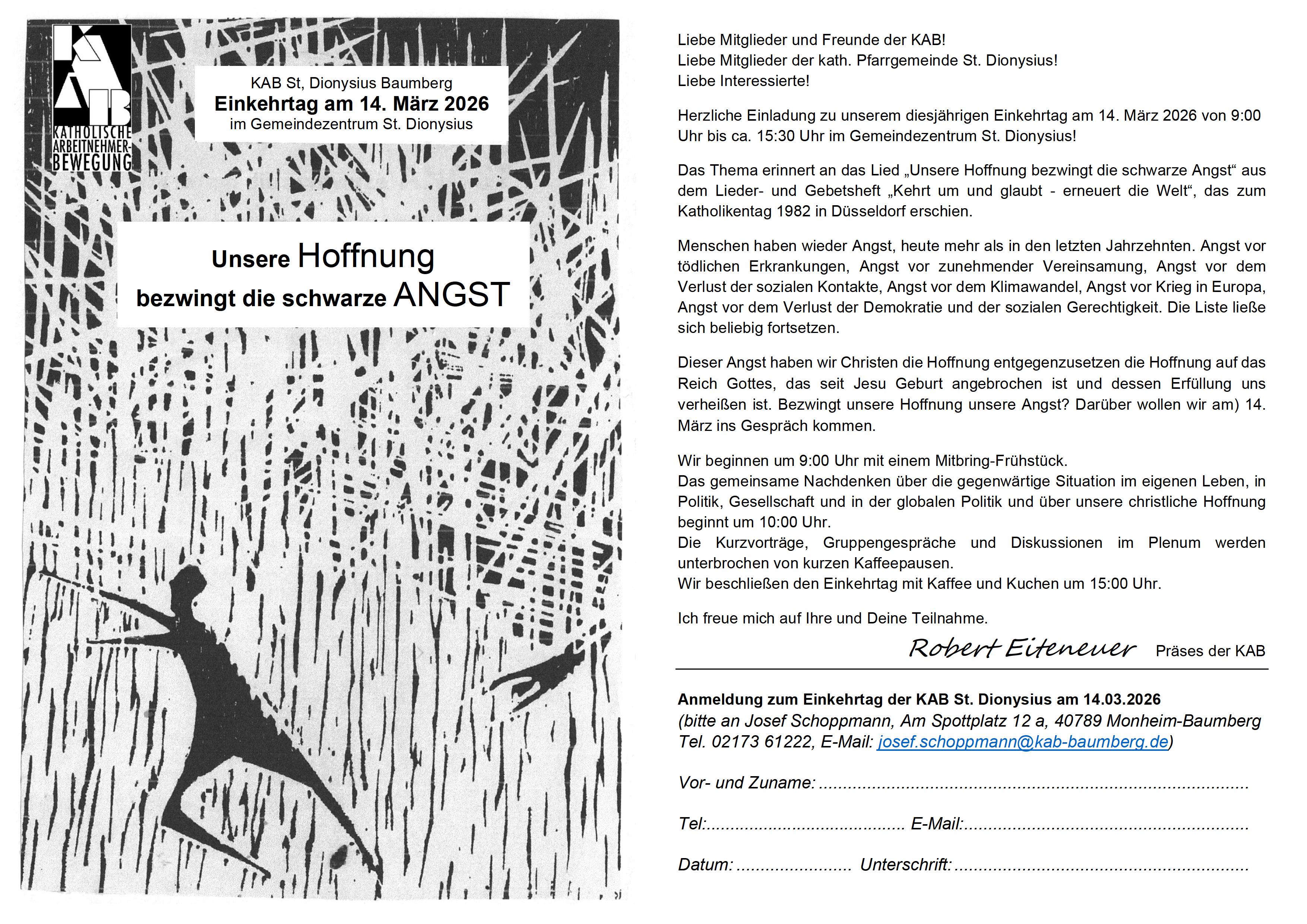 Die Katholische Arbeitnehmer-Bewegung St. Dionysius Baumberg e.V. lädt zu ihrem 9. Kreativmarkt ein.